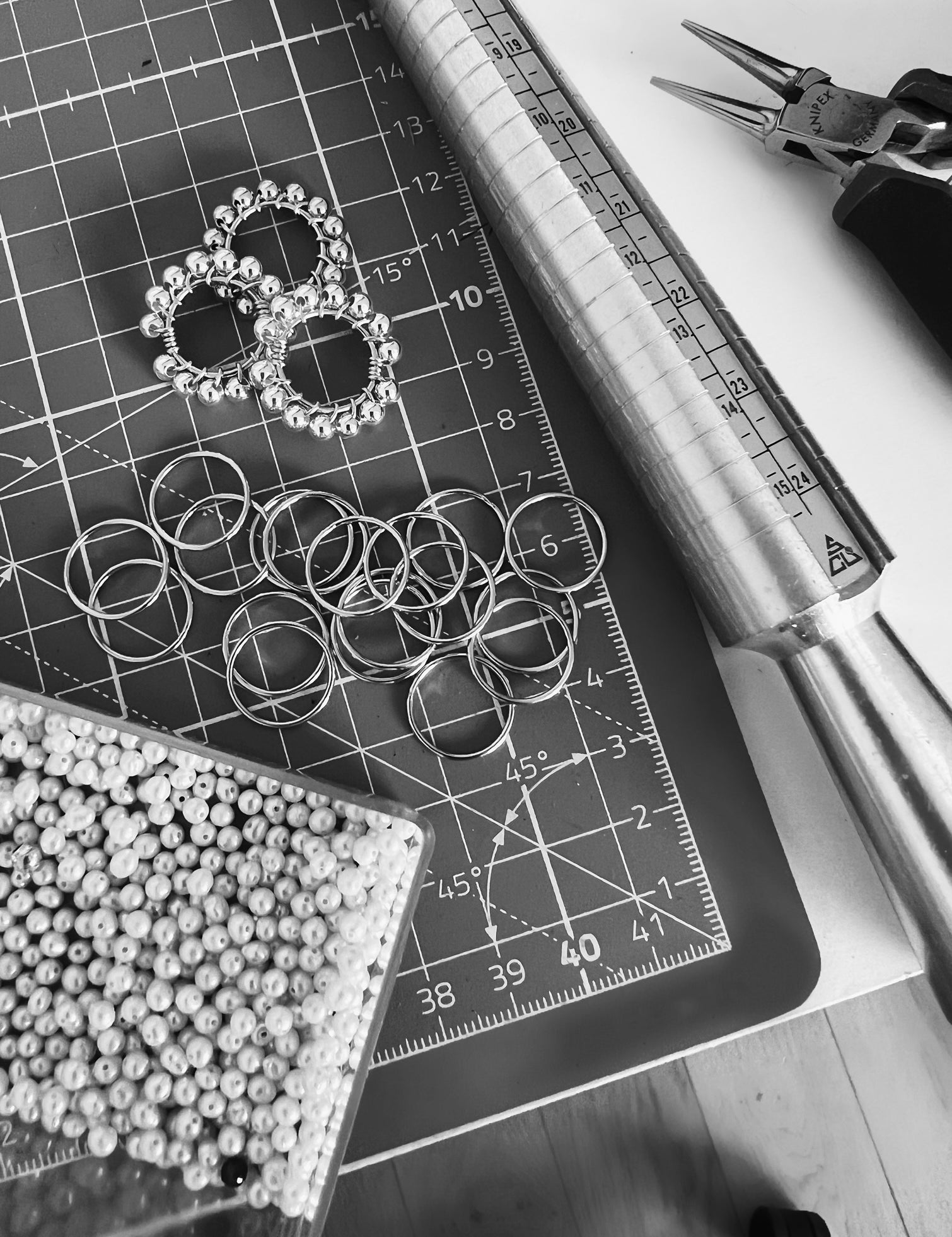 Nous mettons un point d’honneur à l’art et au travail de la main. De la naissance du bijou, en passant par le dessin jusqu’à la réalisation finale, chaque étape est réalisée par le regard et la main experte de la créatrice.