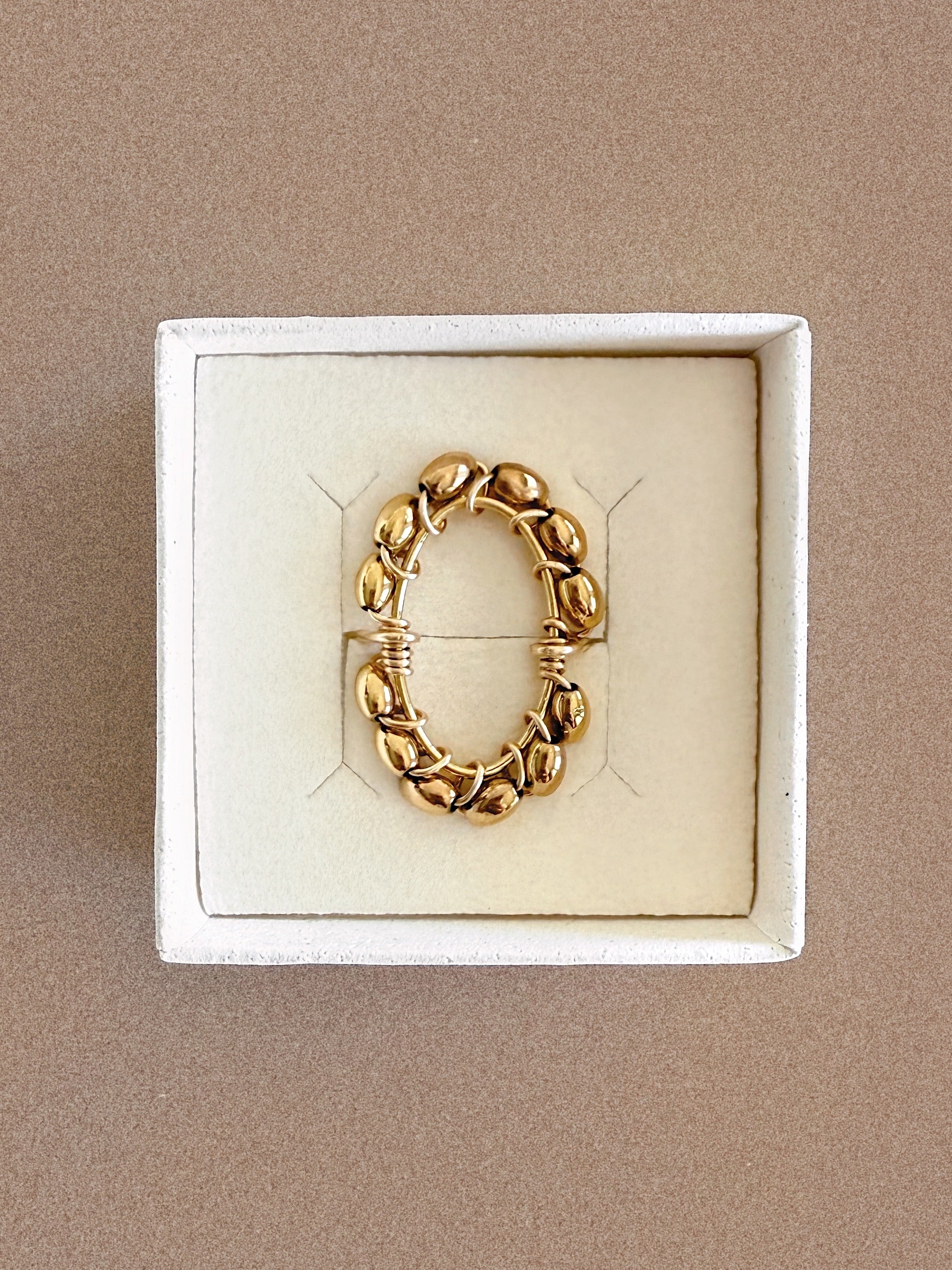 La bague Laia est composée d’hépatites dorées ou roses Gold , telles des pétales de fleurs tissées les unes aux autres autour d'un anneau. Le diamètre central est de 1,5 cm x 2,5cm environ.