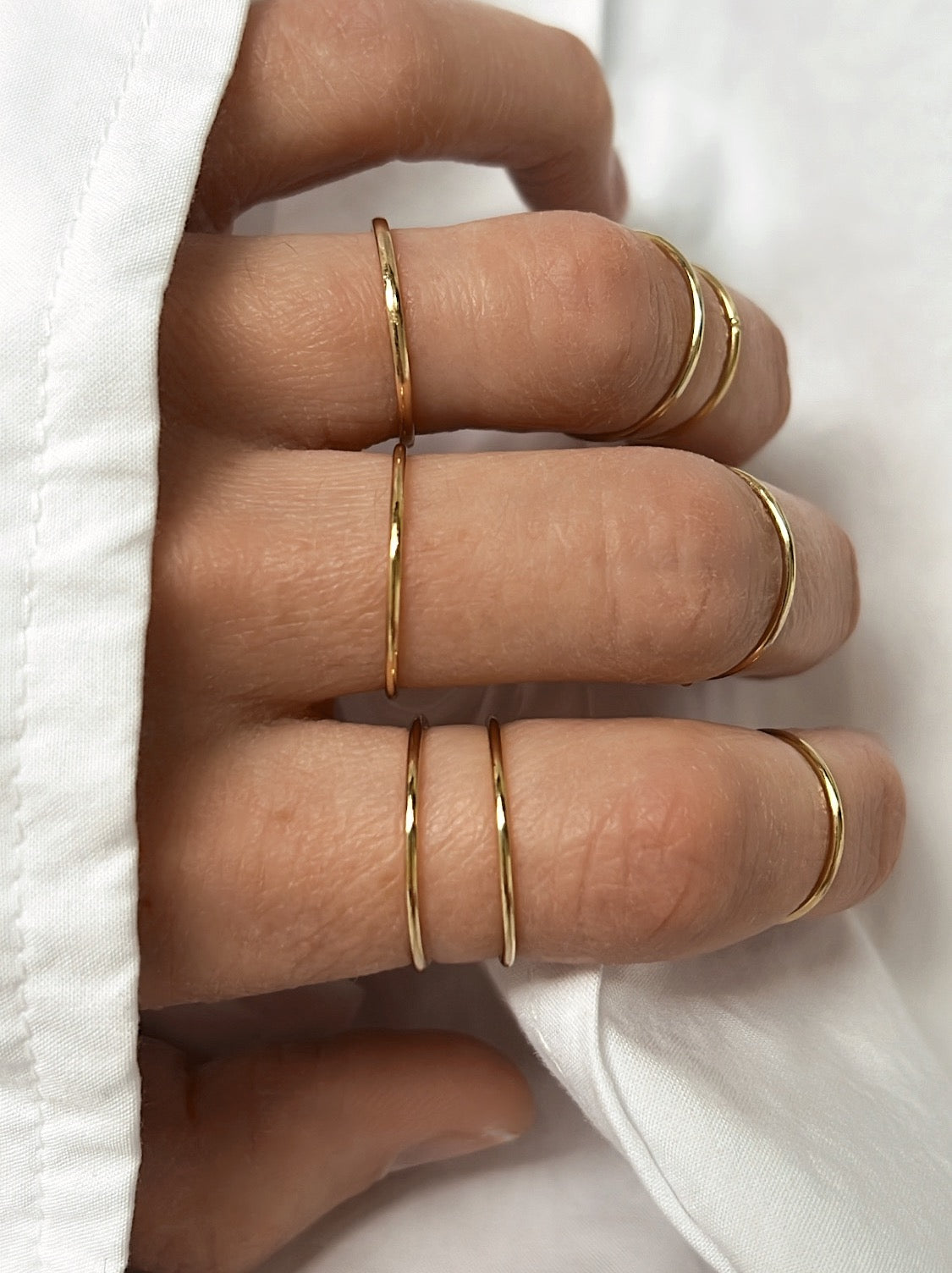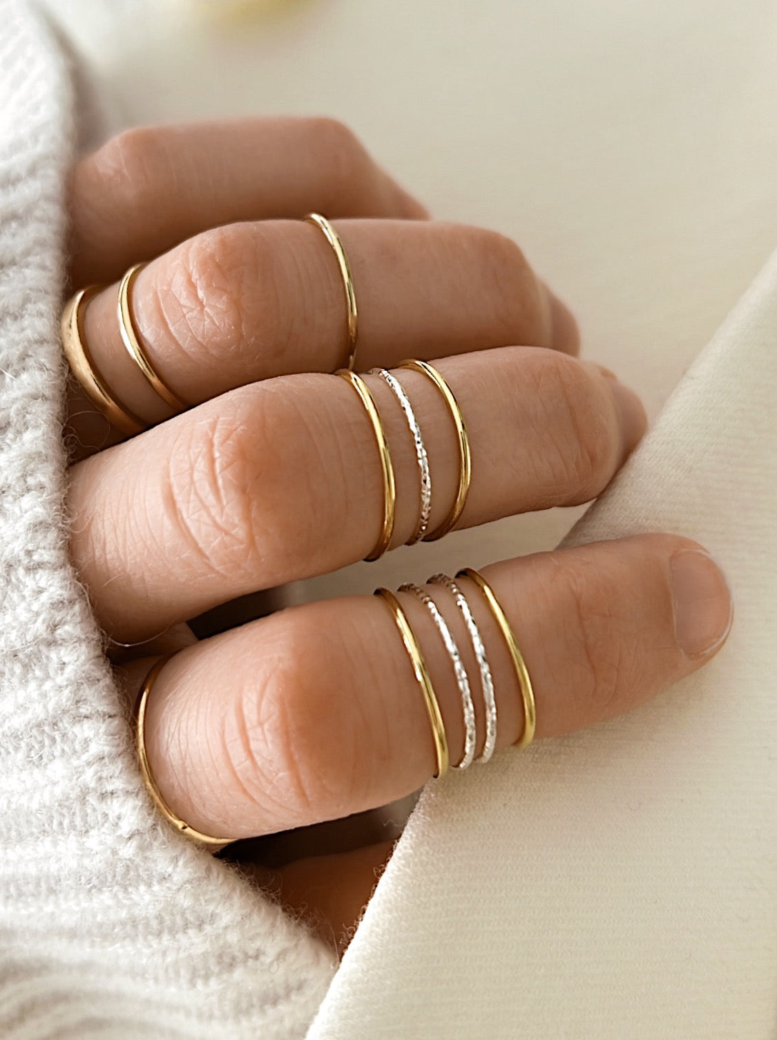 Un anneau lisse d'une épaisseur de 1mm, en or laminé 14 carats ou argent 925, à porter en bague de phalange ou bague classique, en fonction de vos envies!