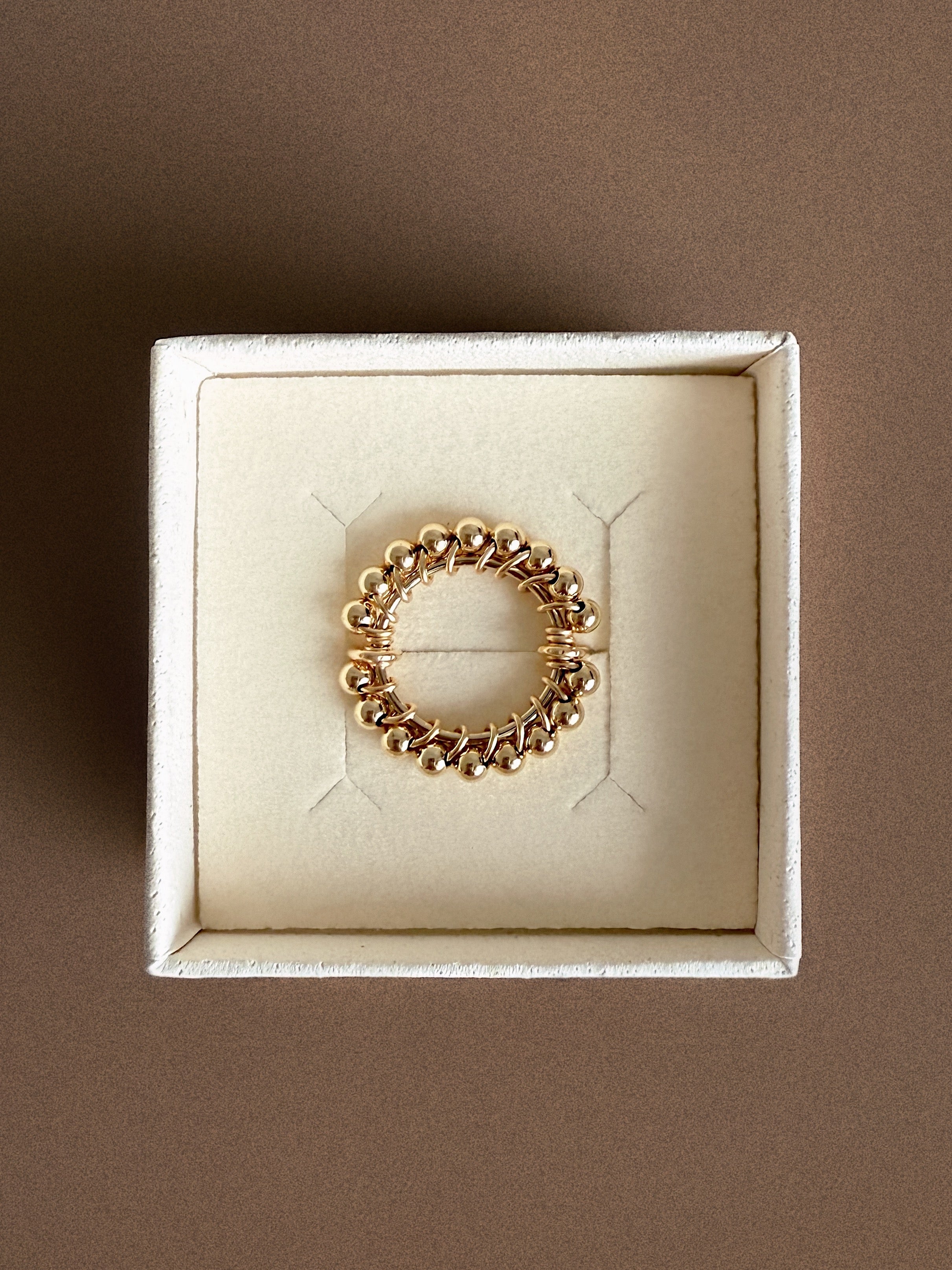 Bague Solaire en perles de verre et or laminé 14 carats.