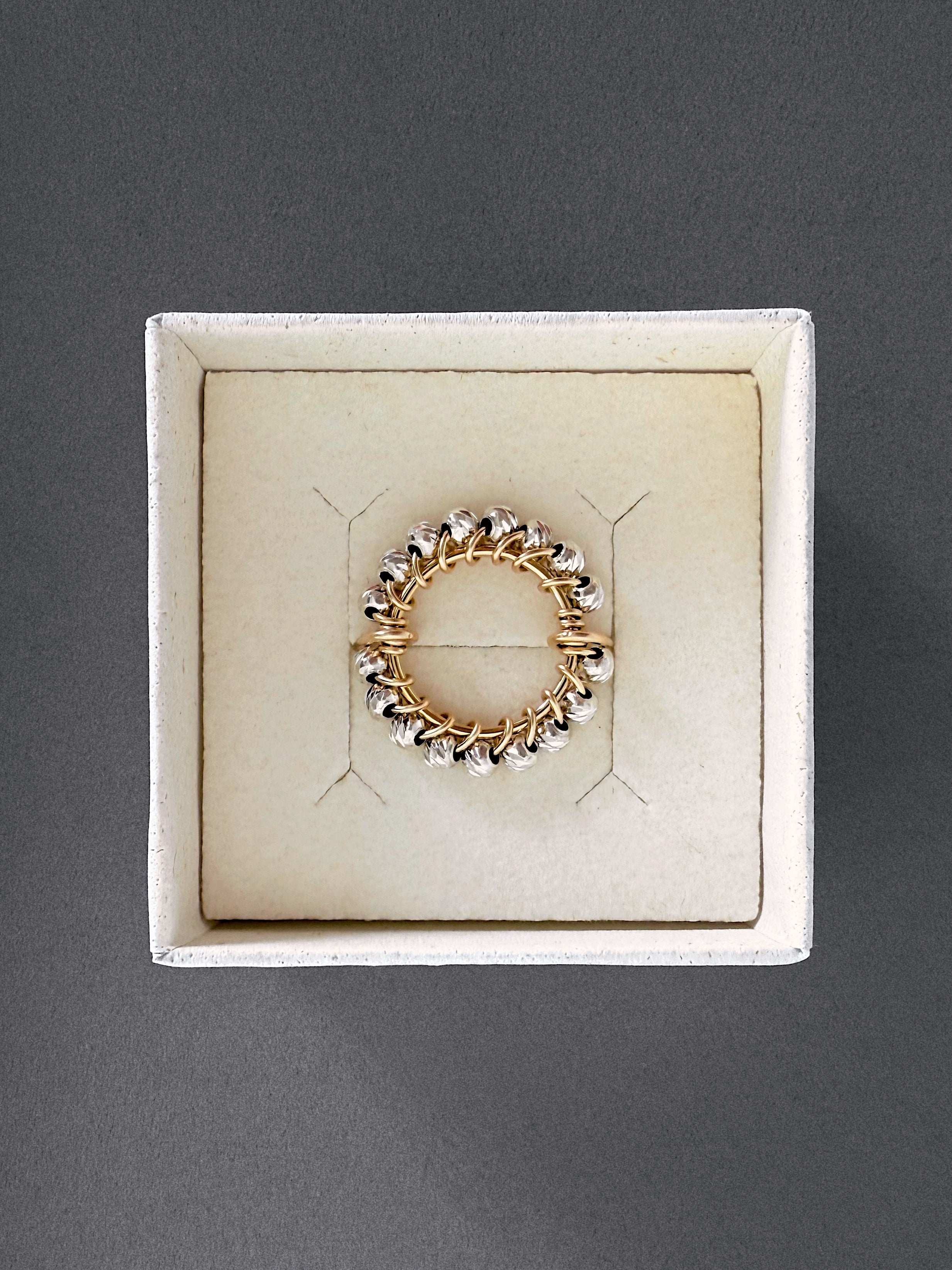 Bague Solaire en perles de verre et or laminé 14 carats.