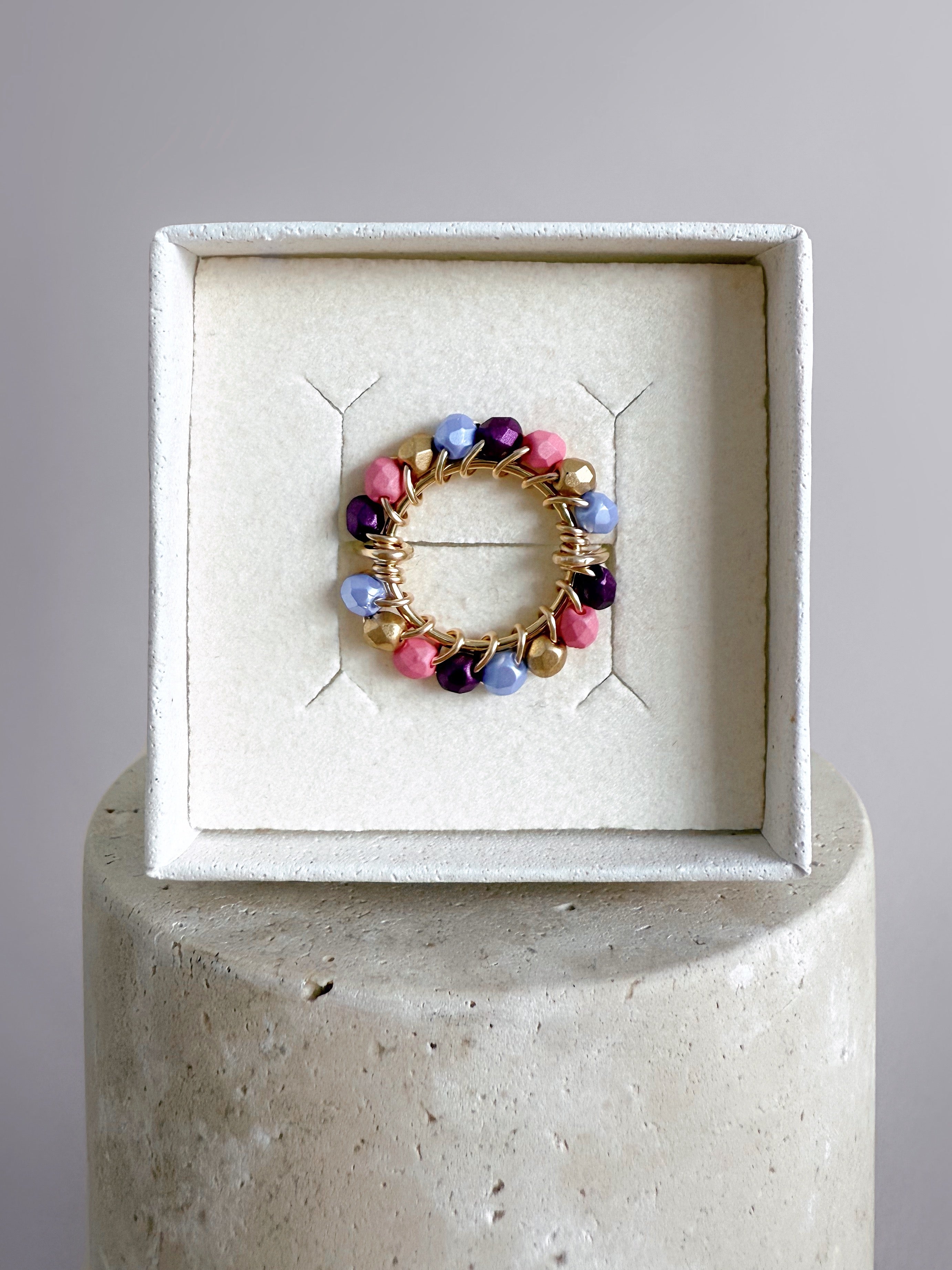 Bague Solaire en perles de verre et or laminé 14 carats.