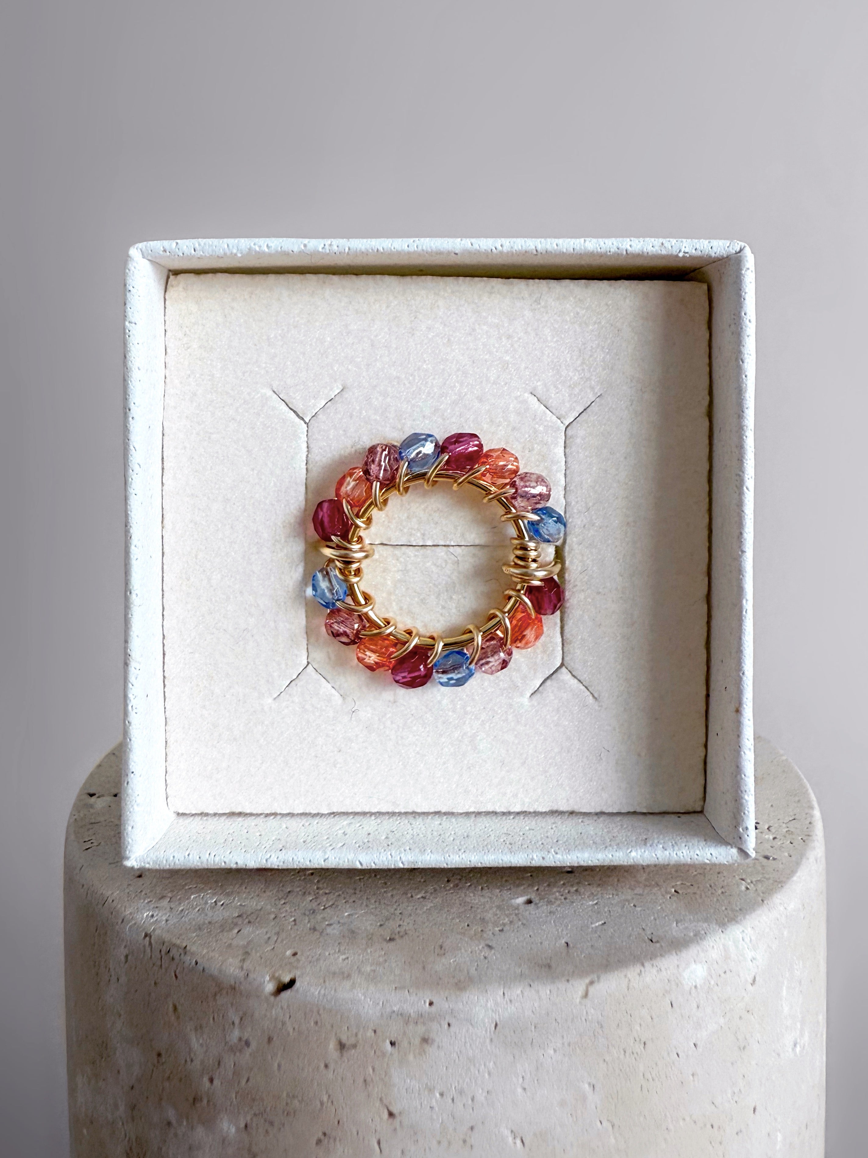 Bague Solaire en perles de verre et or laminé 14 carats.