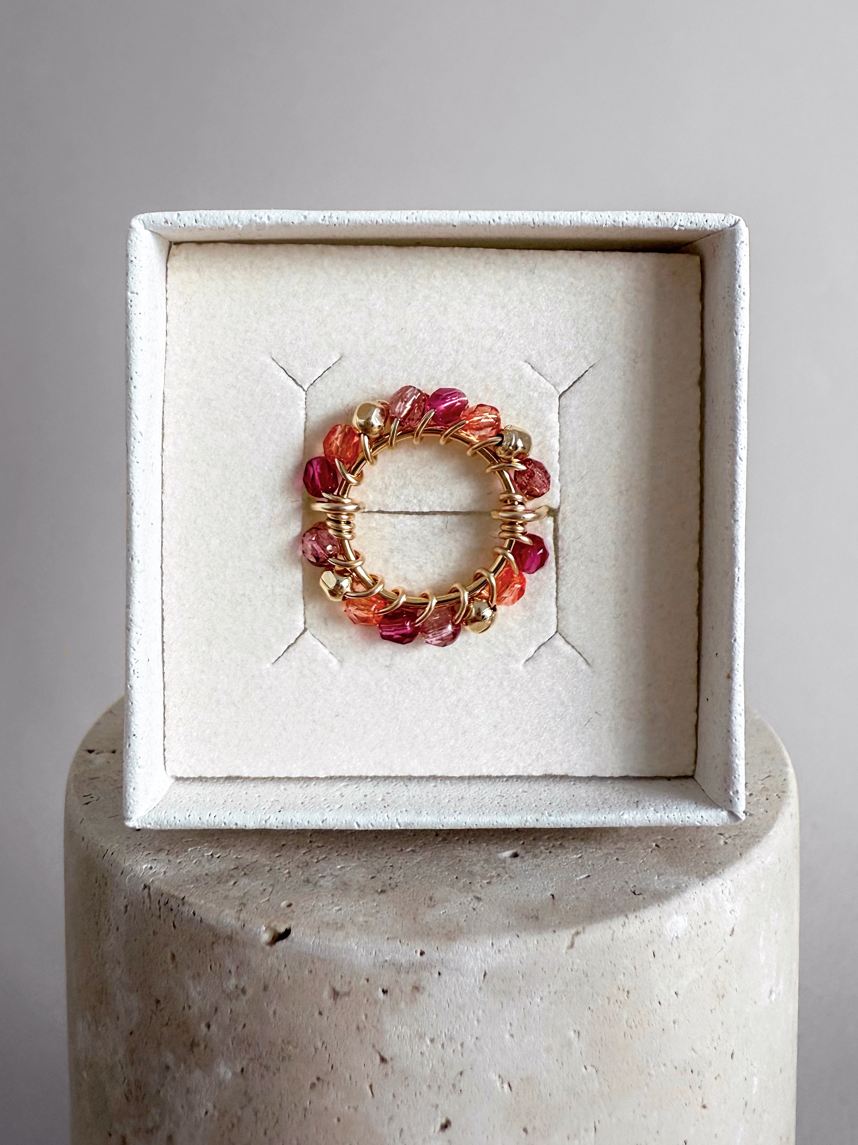 Bague Solaire en perles de verre et or laminé 14 carats.