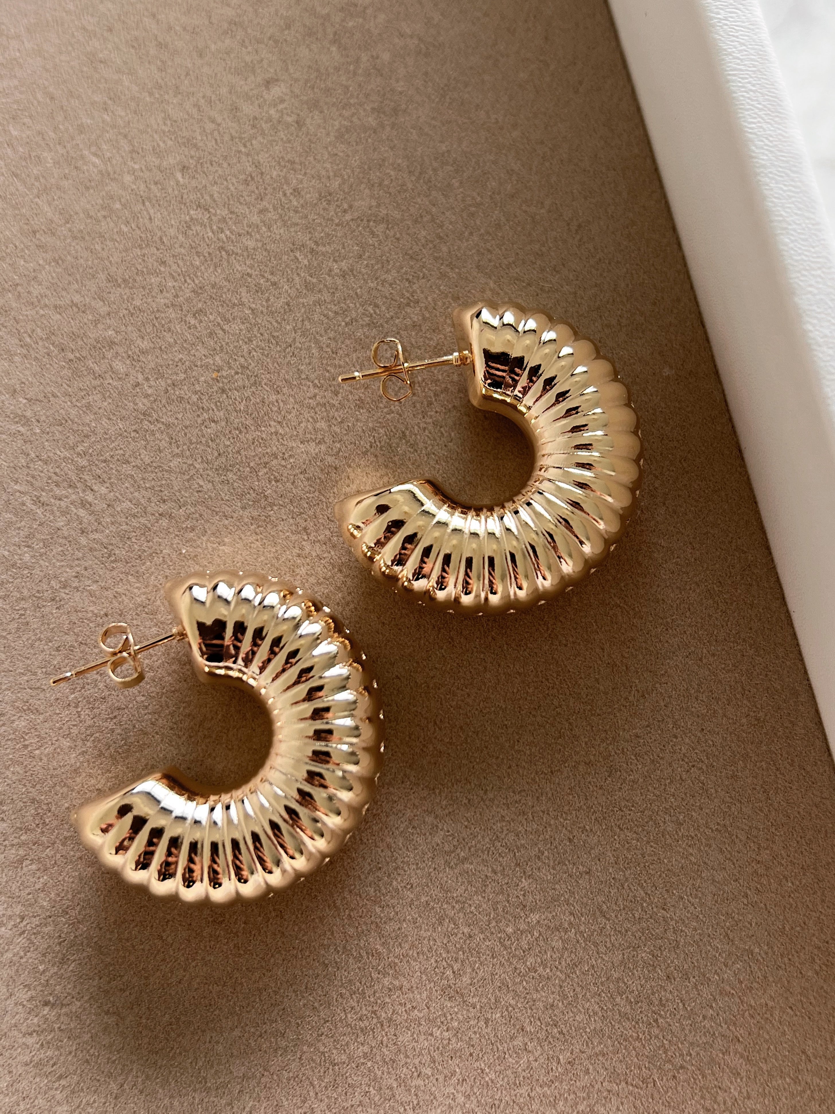 Les créoles Alba, inspirées des reliefs des coquillages, sont entièrement en plaqué or 3 microns.