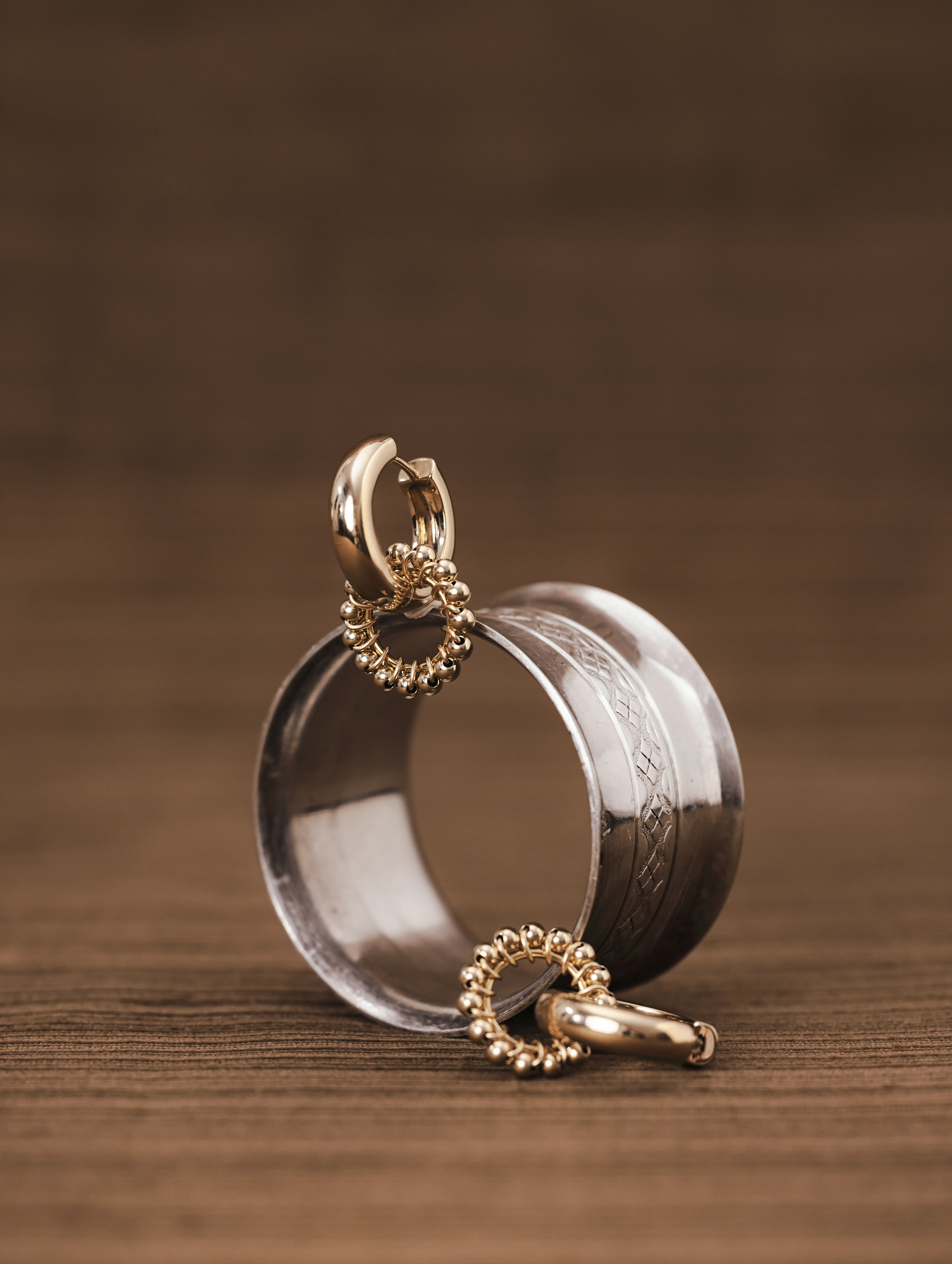 Cette technique consiste à appliquer une couche d'or de 3 microns d'épaisseur sur une base métallique, principalement du laiton, procurant ainsi un éclat et une finition élégante. Ce procédé confère aux pièces un équilibre parfait entre qualité, résistance et esthétique.